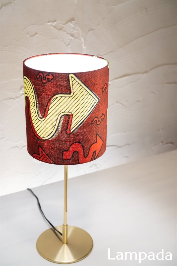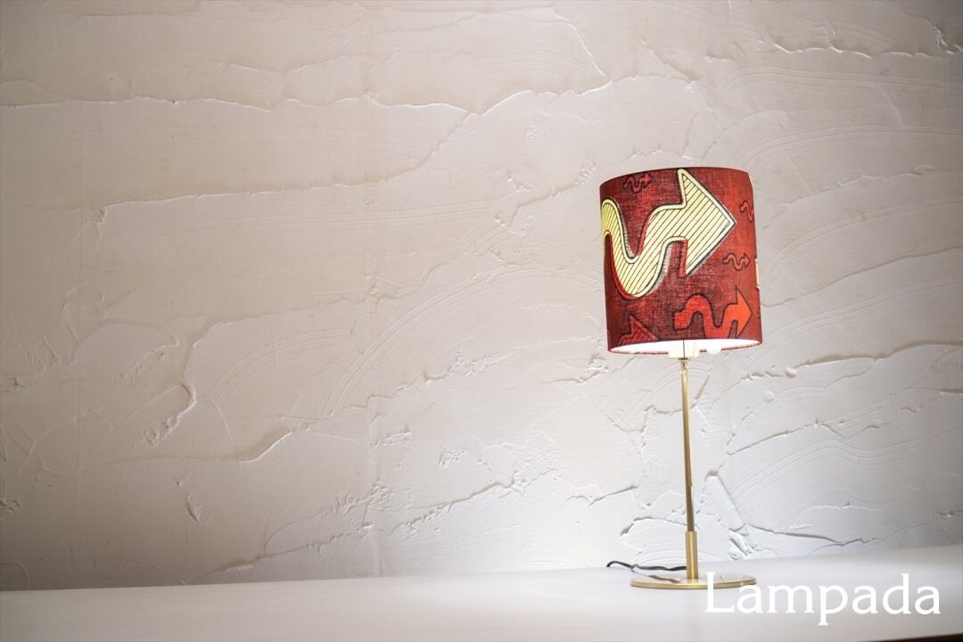 アフリカのプリント布「パーニュ」を使った新洋電気オリジナルのスタンドライト。同じ柄のペンダントとあわせてお使いいただけます。