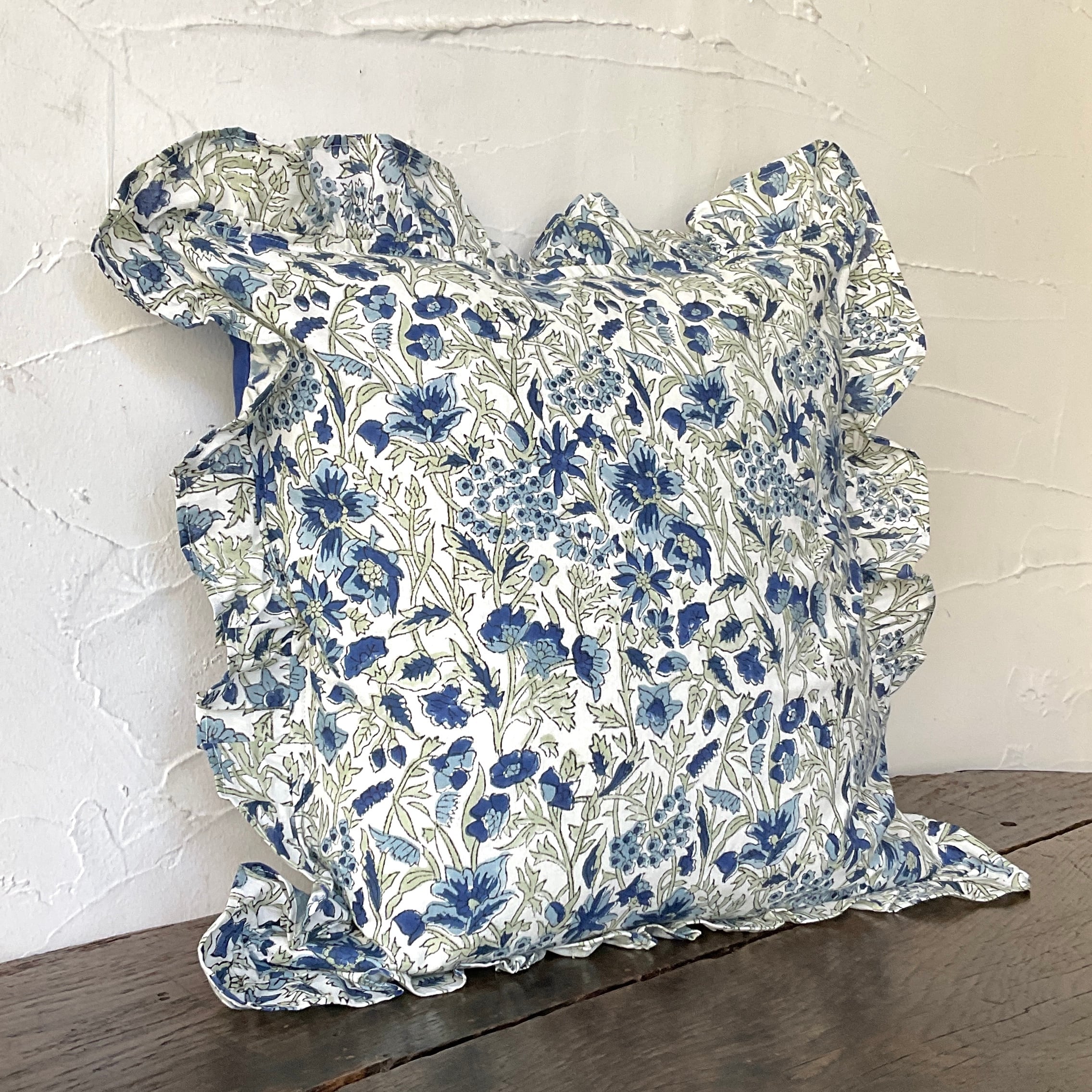 木の塊(ブロック)に模様となる模様を彫って版を作り、布の上に押し当てて模様染めをする、ブロックプリント。