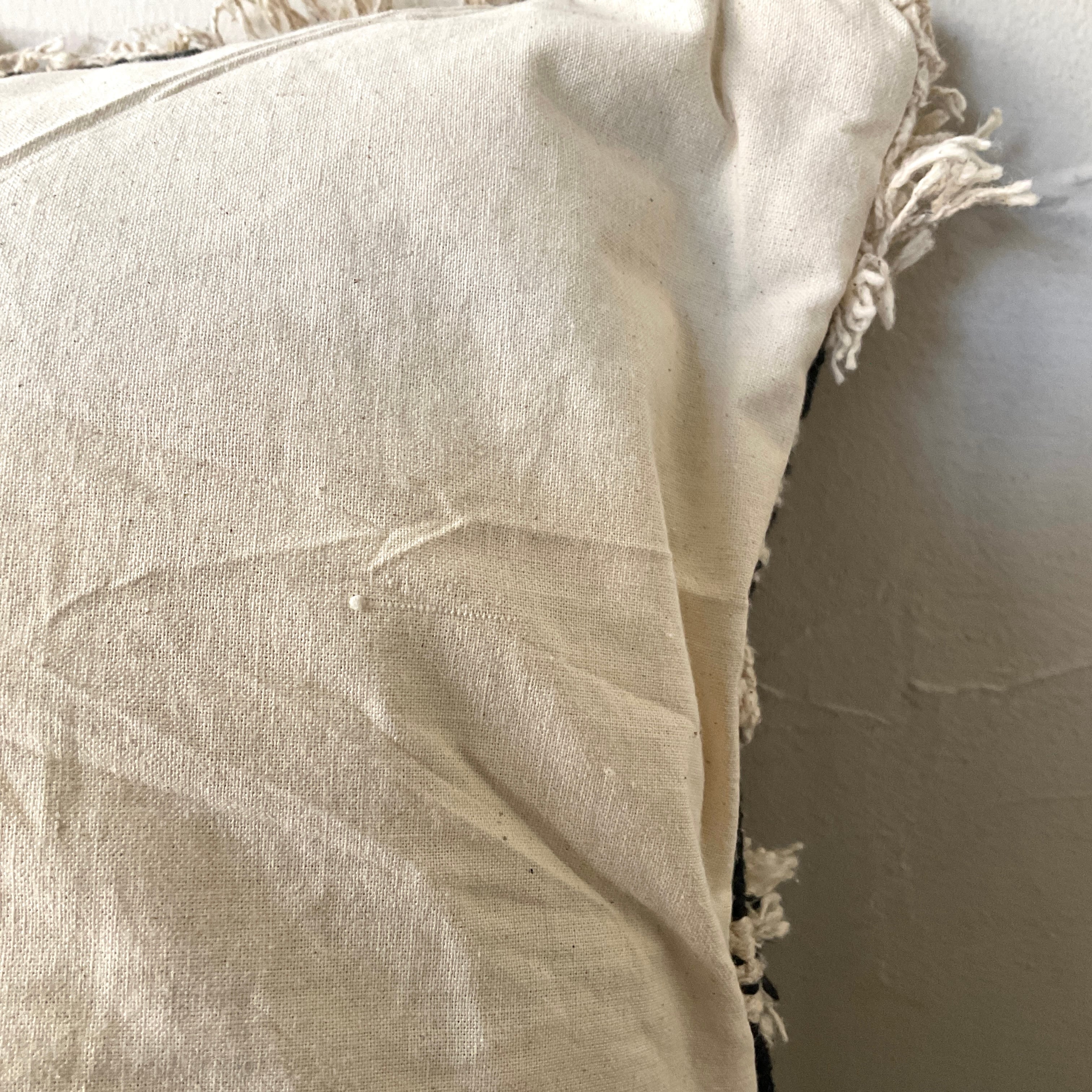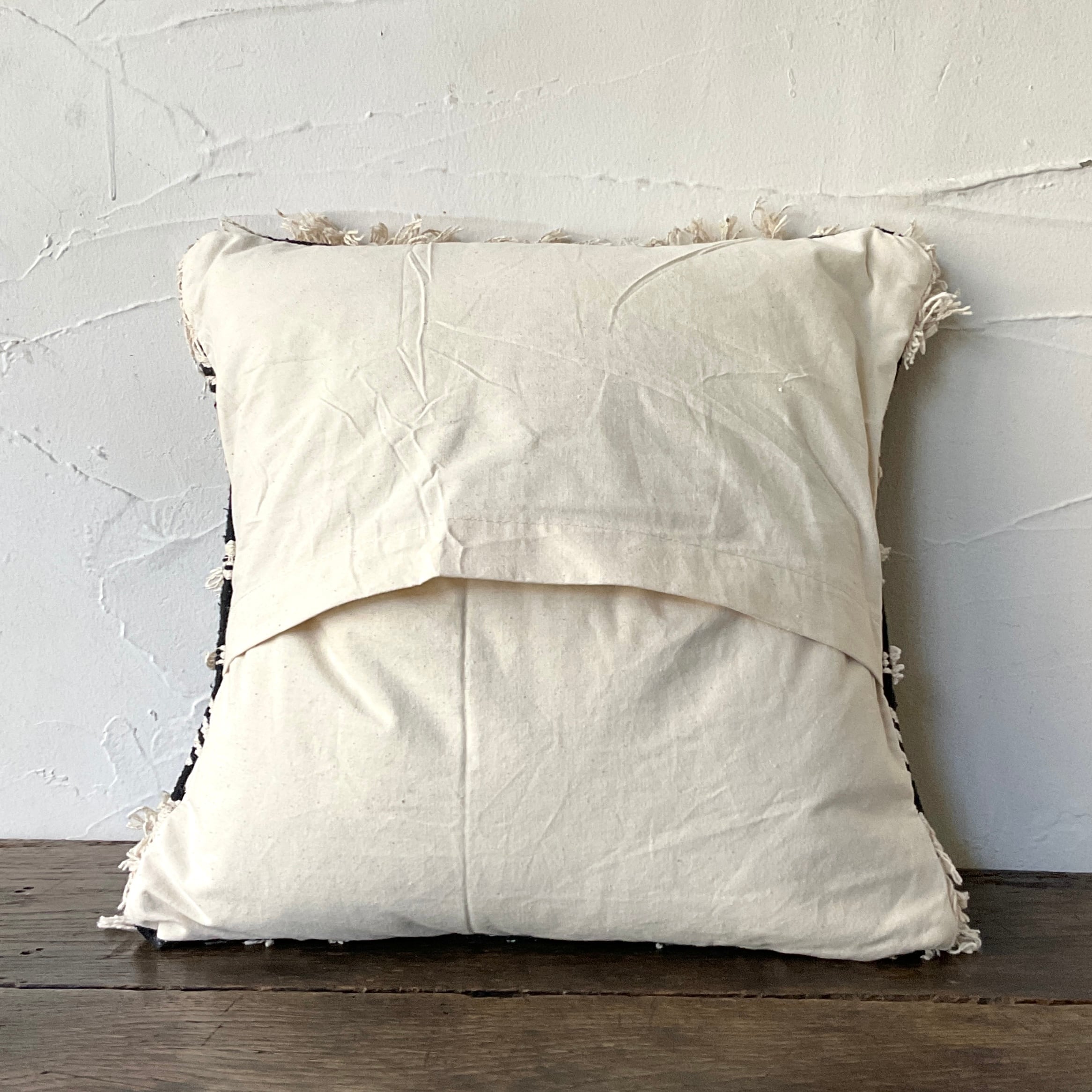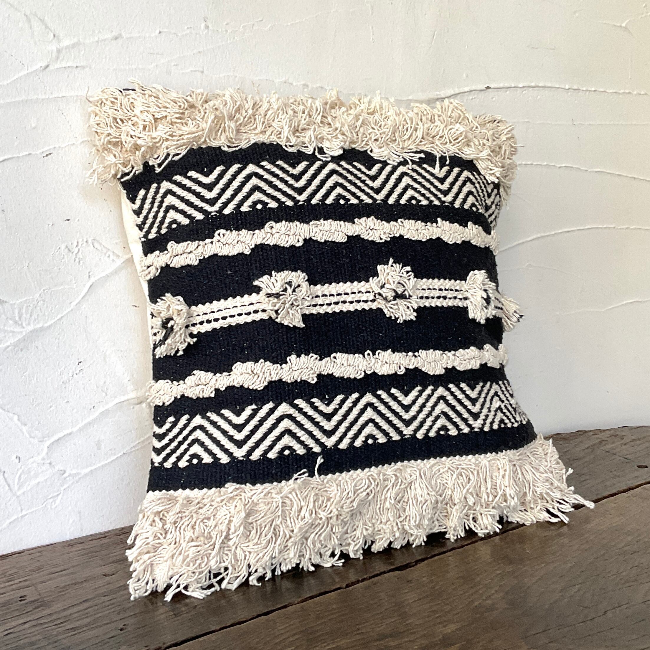 【ピープルツリー】手織りフリンジクッションカバー(ブラック×生成り)