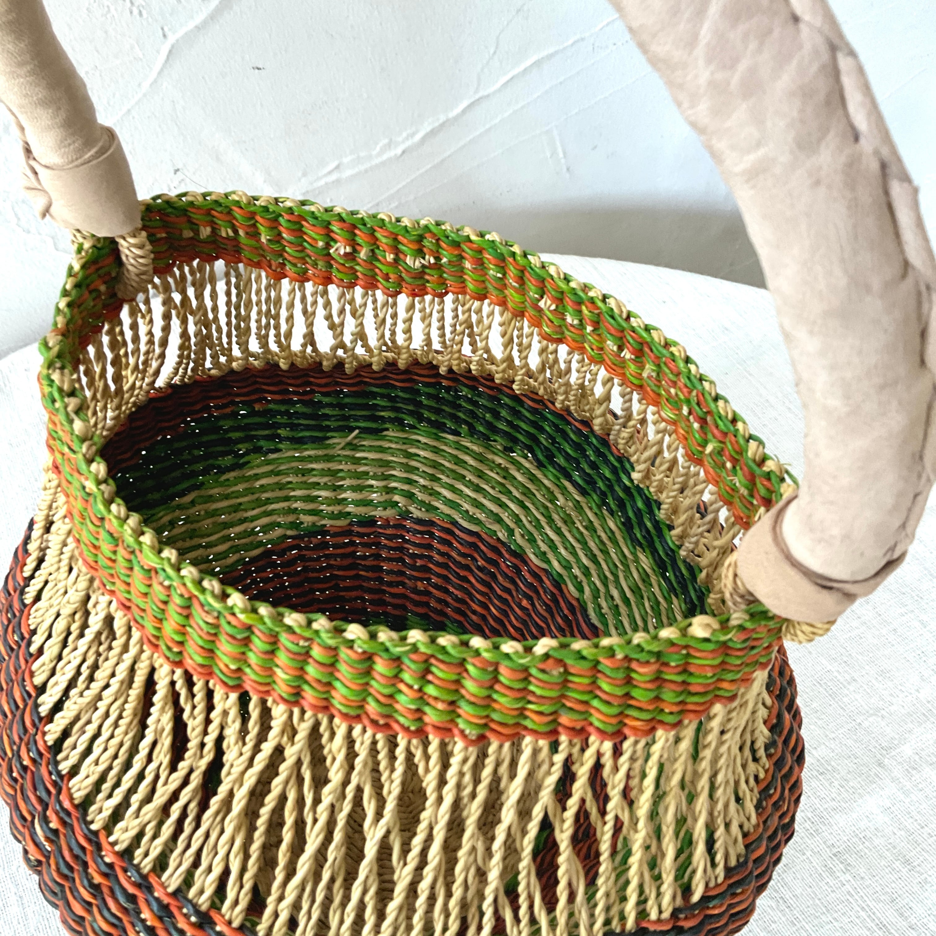 ガーナ北東部・ボルガ地方で、1つ1つ丁寧に編まれ、色柄は一点ものです。