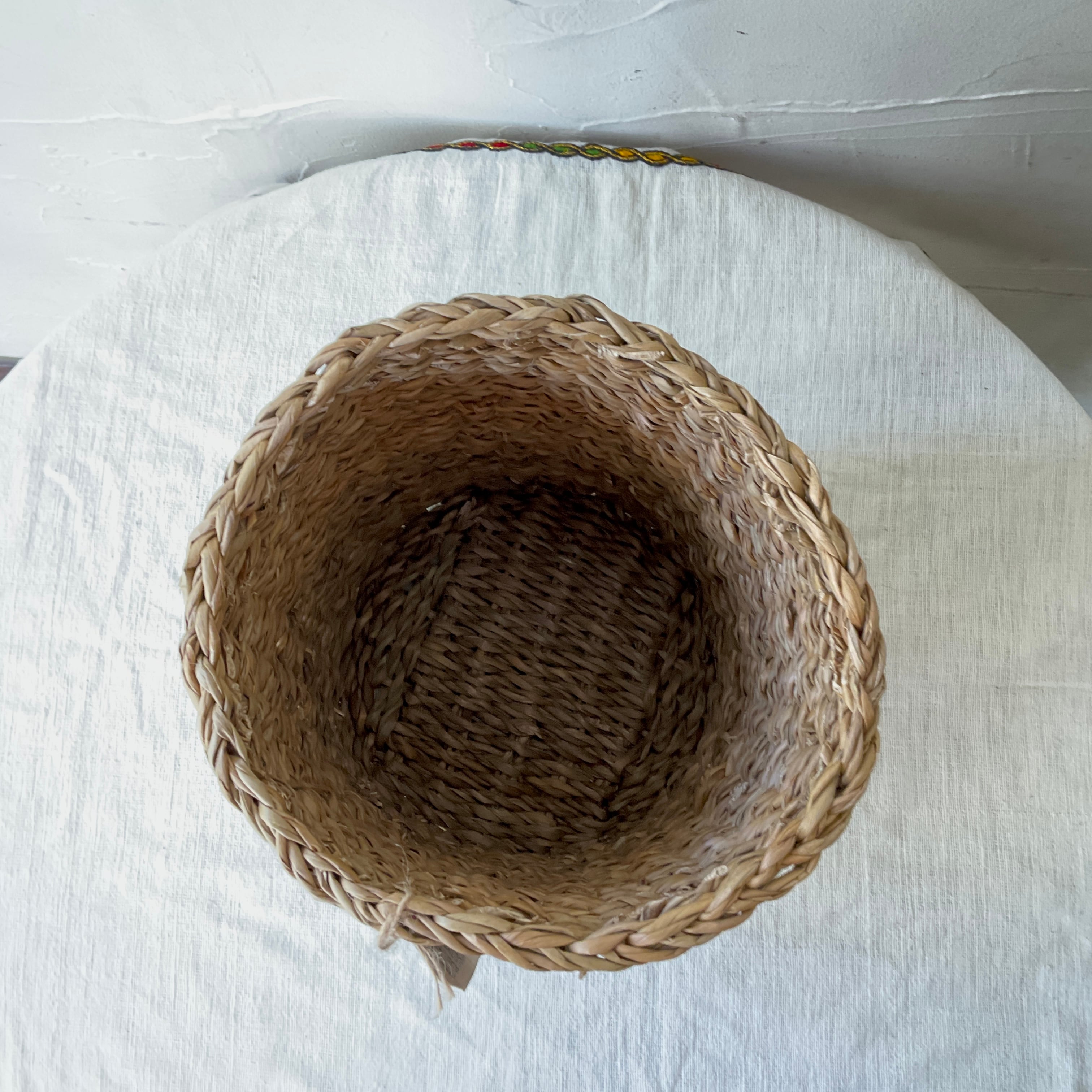 ホグラ(がまの葉)で一つ一つ手編みされたかご。