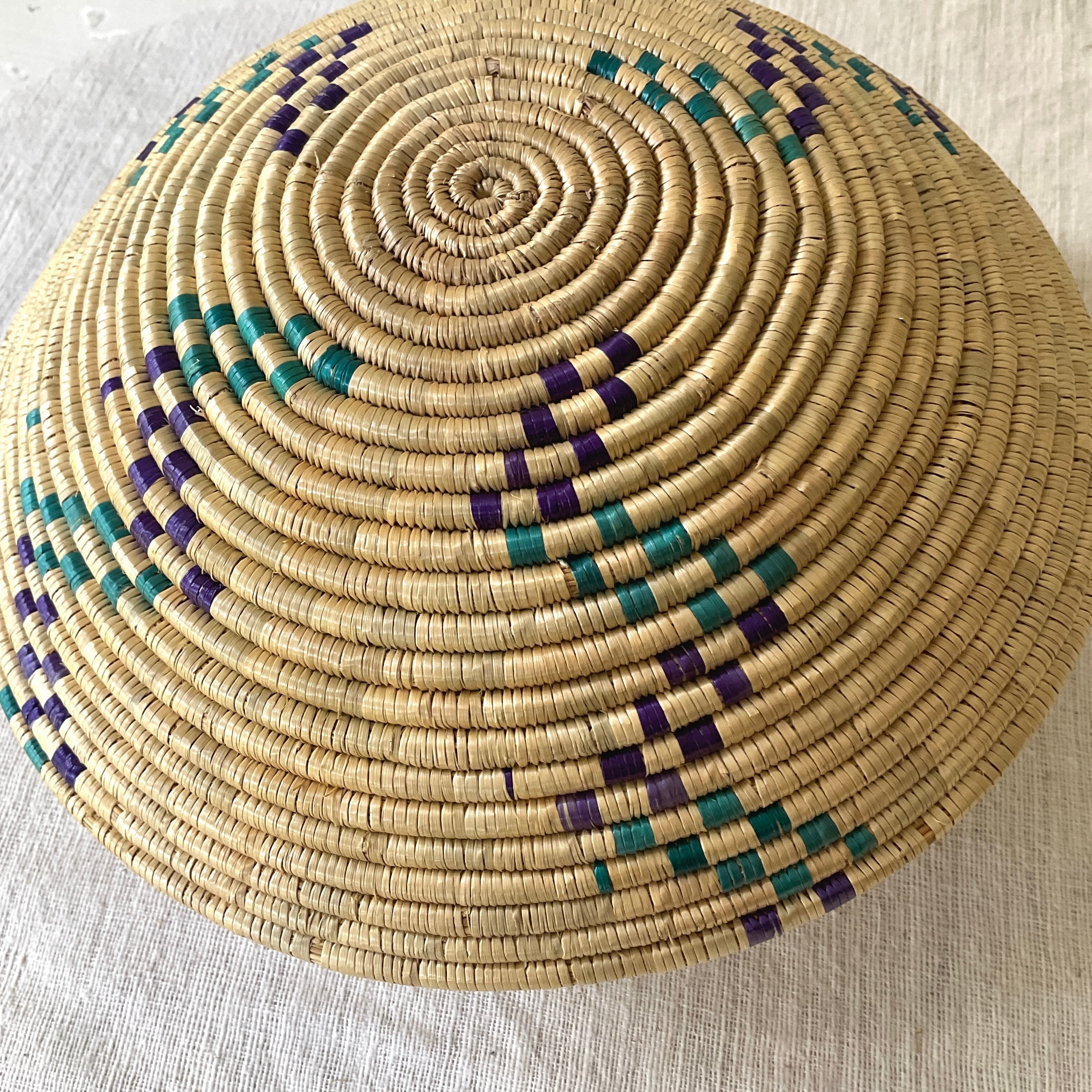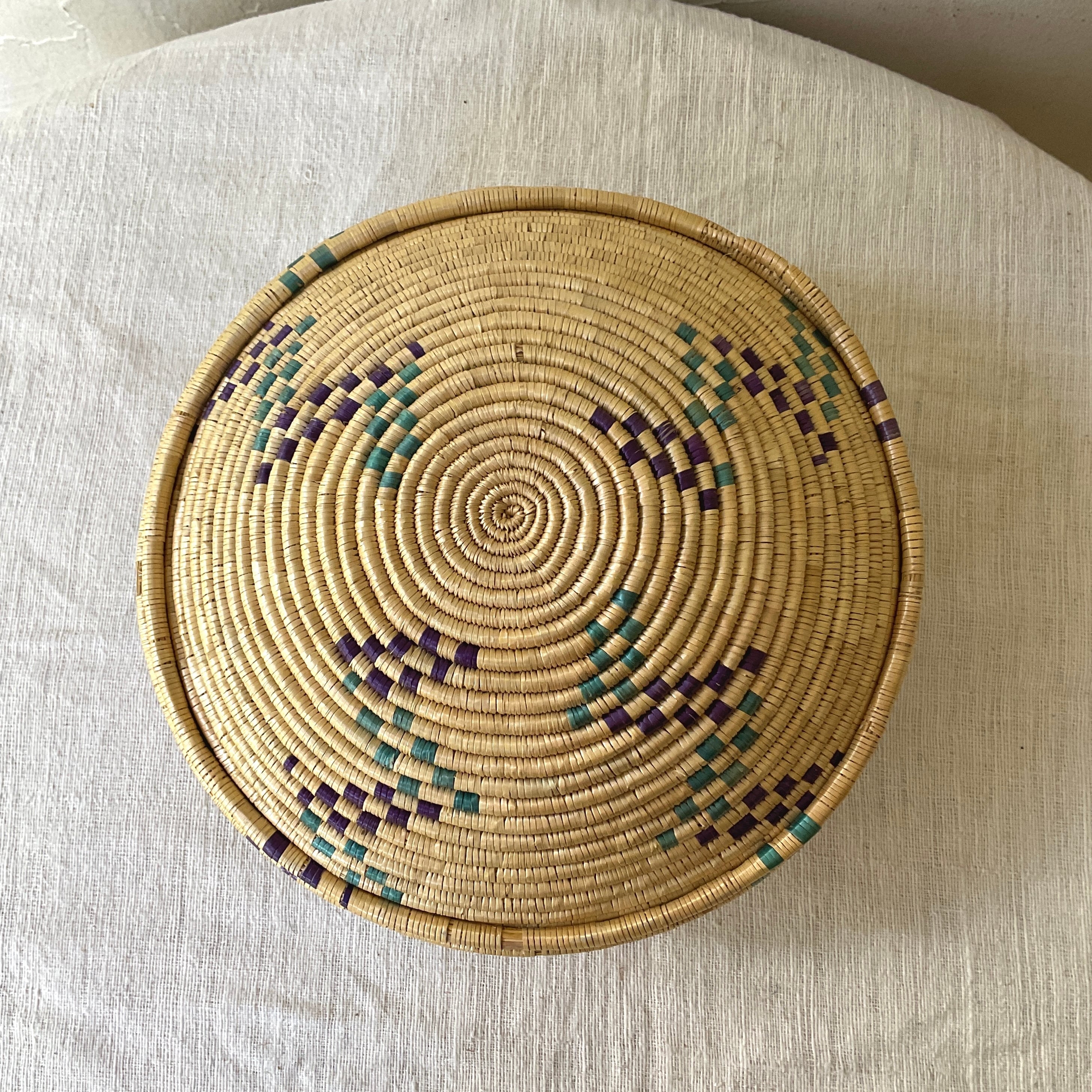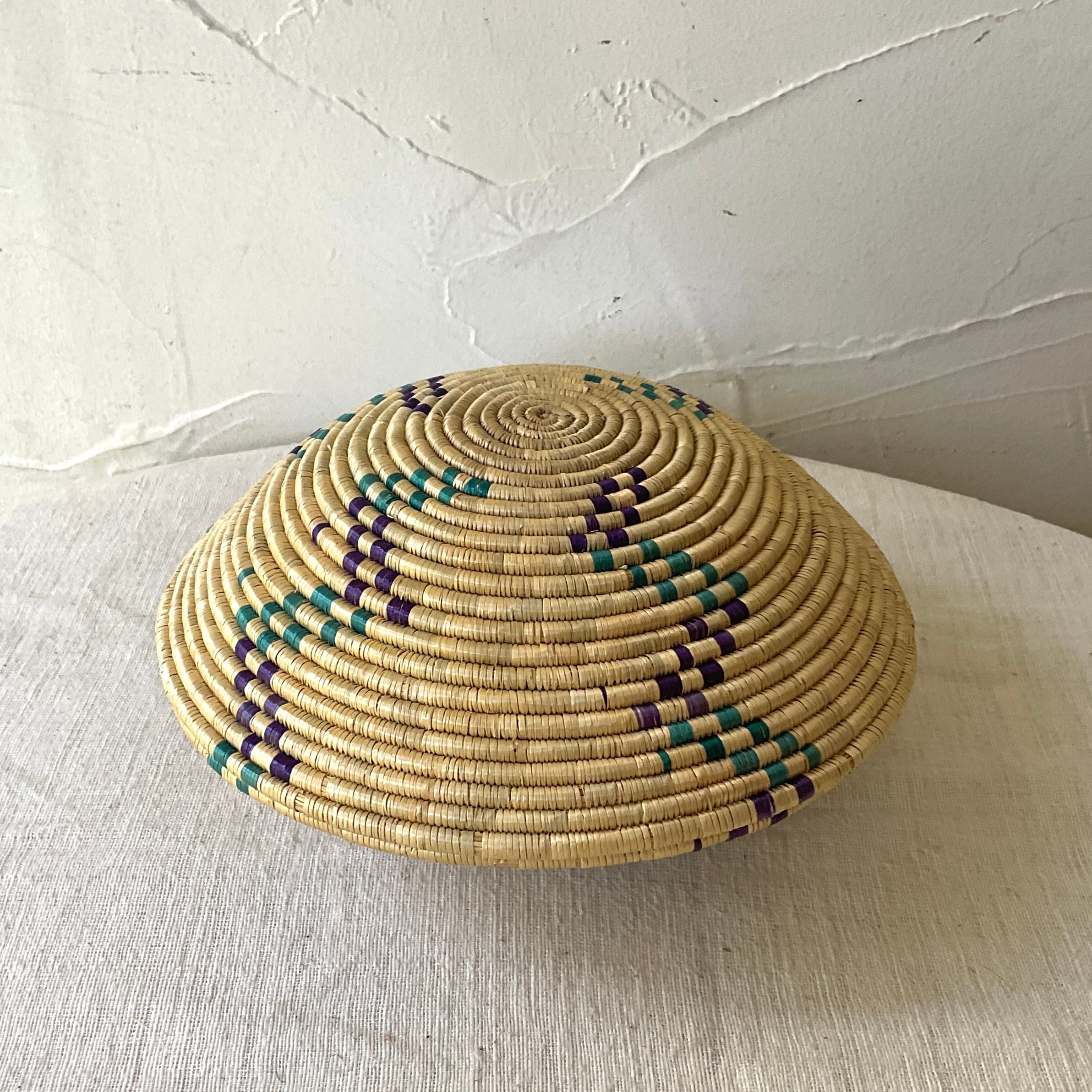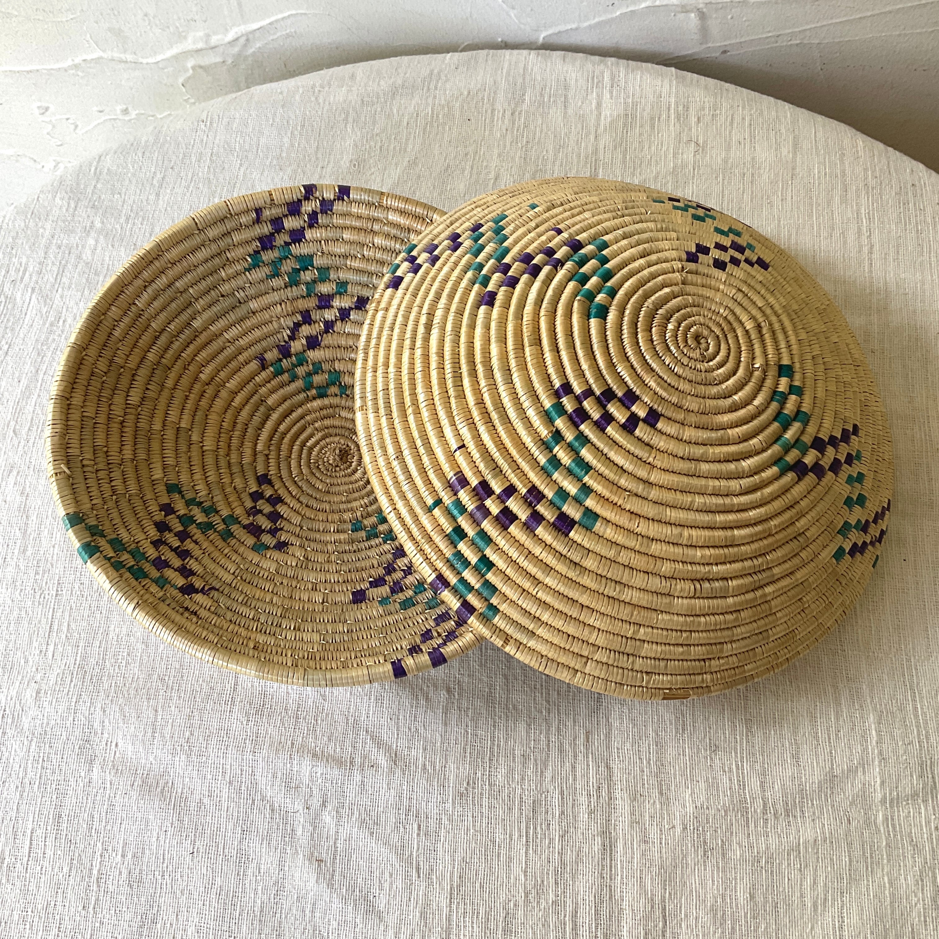 貝の様な、どら焼きのような、ユニークな形の蓋付きカゴ。