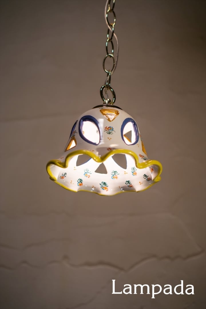 ぽってり厚い本体に手描きの絵がやわらかいスペインの陶器製ペンダント。