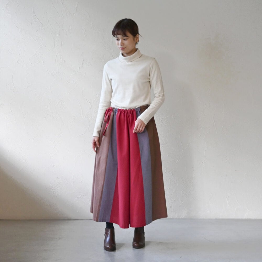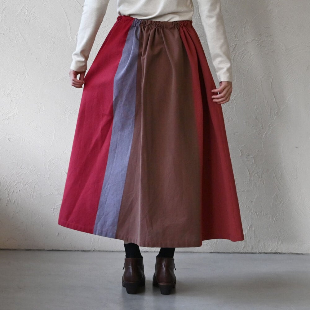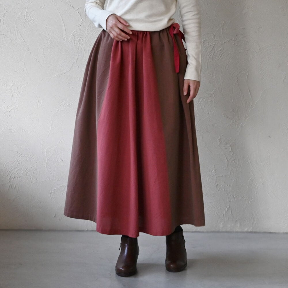 ウエストのギャザー調整で、どの色を目立たせるか調整可能なバッスルスカート。