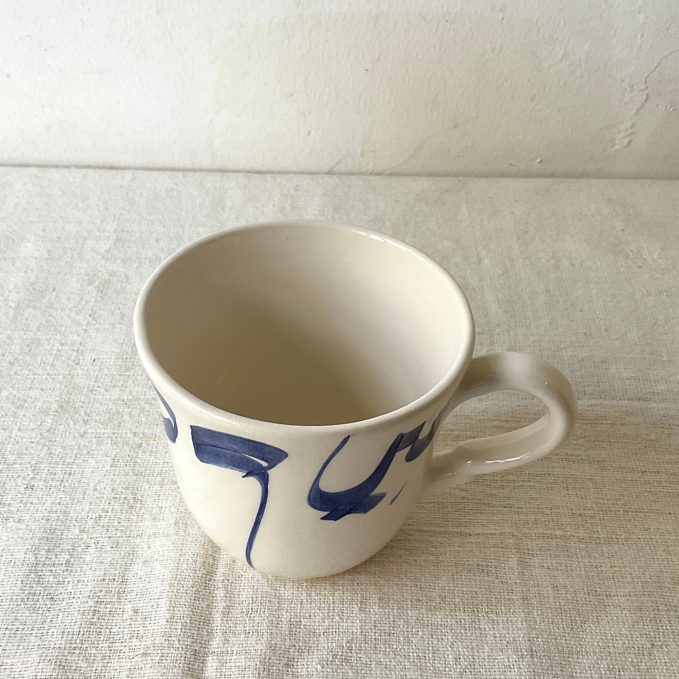 【チュニジア陶器】マグカップ(アラビア文字 青)