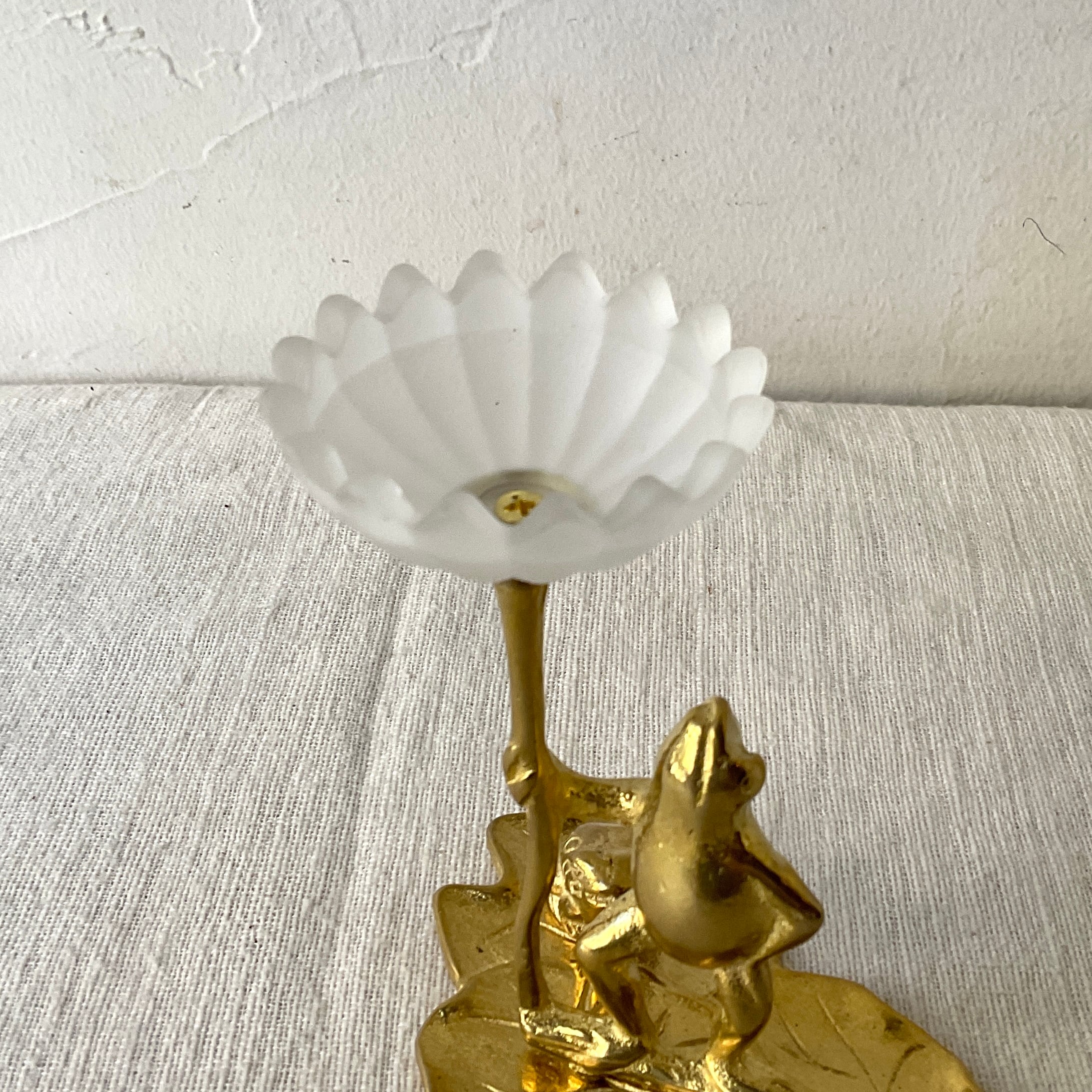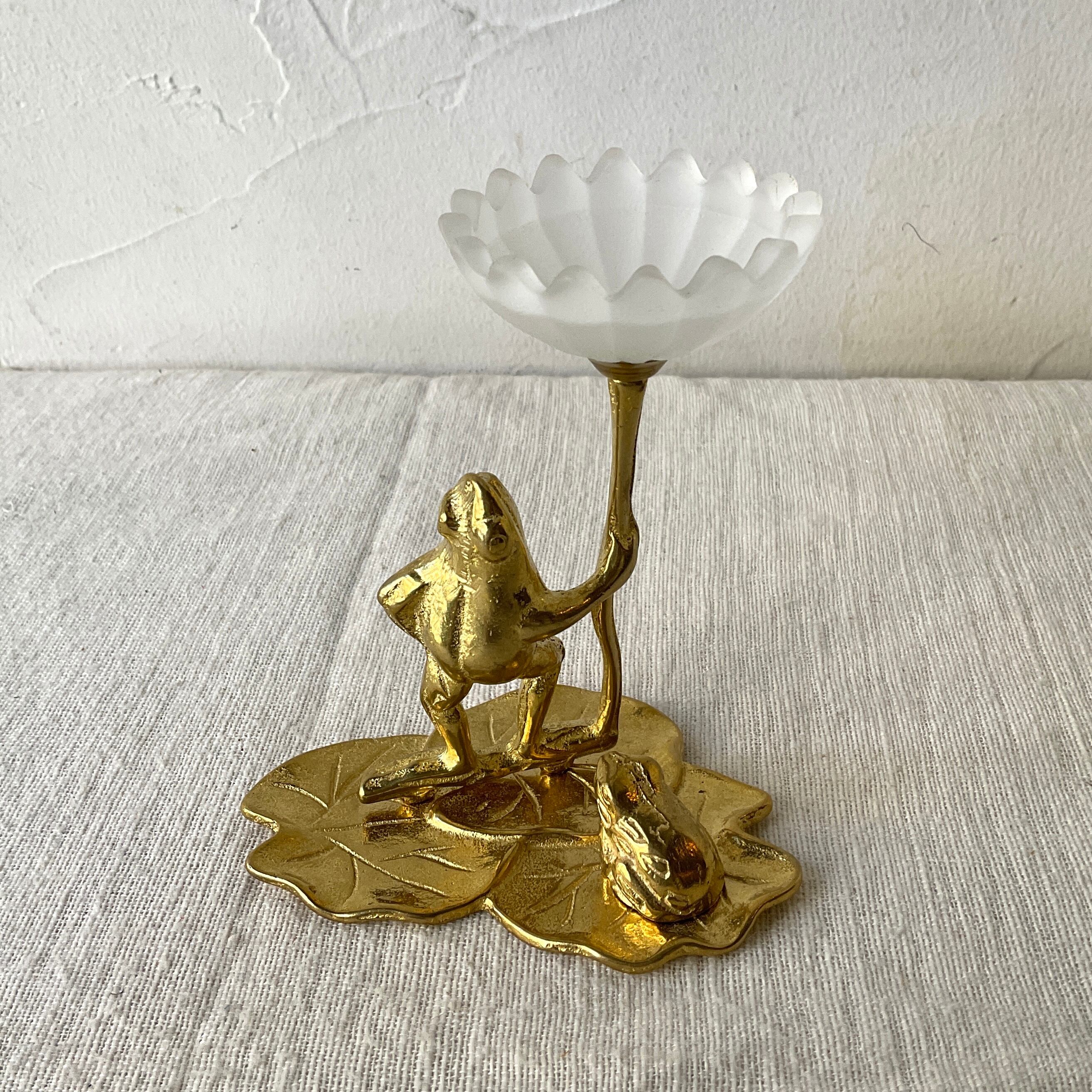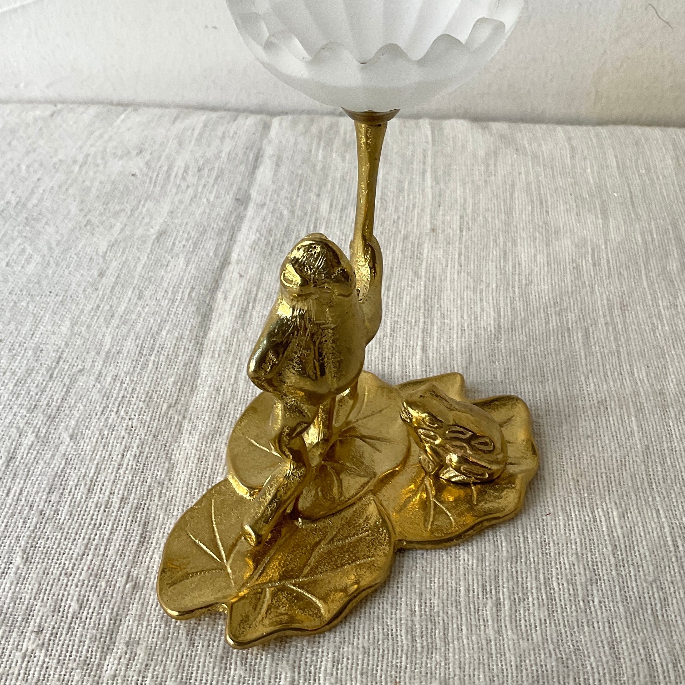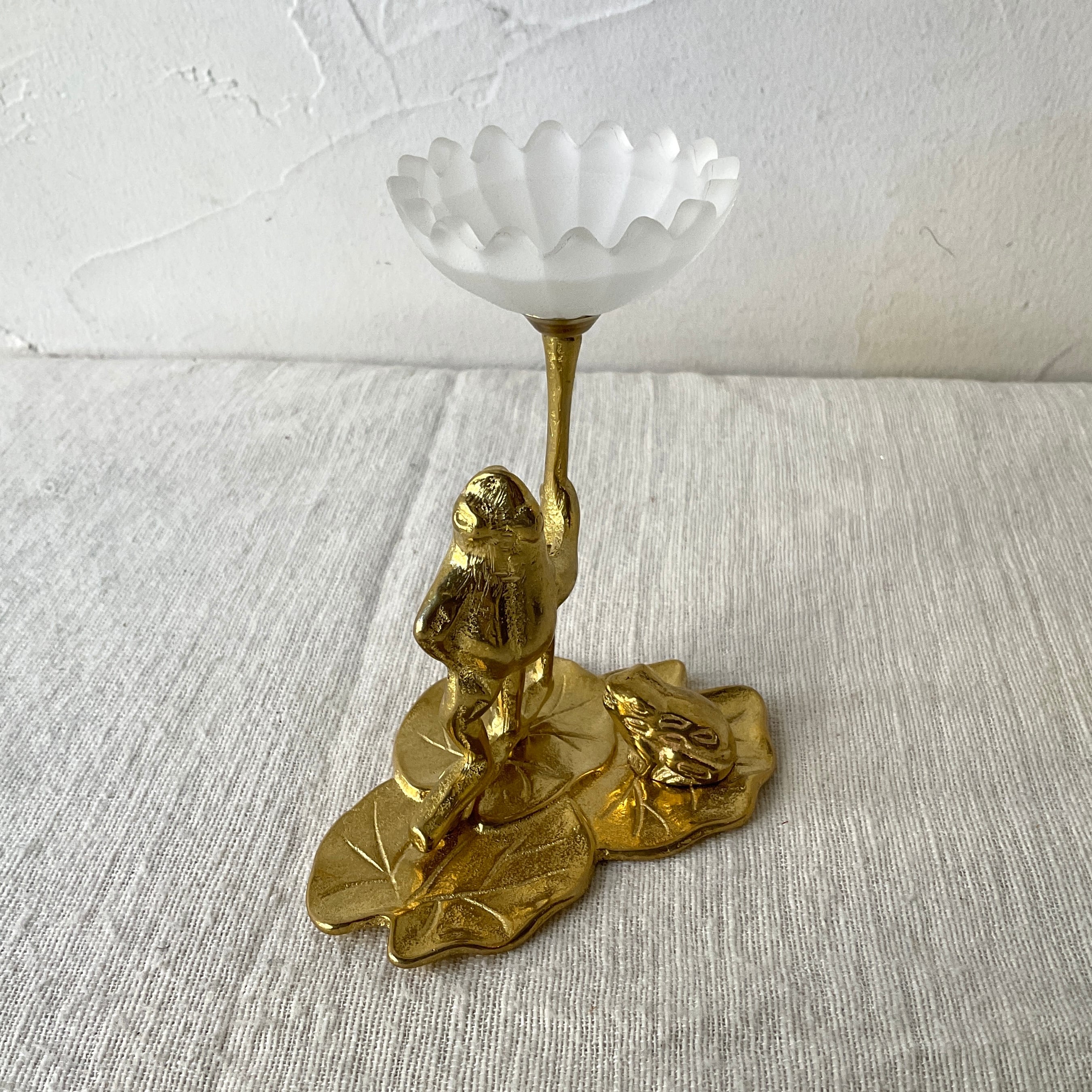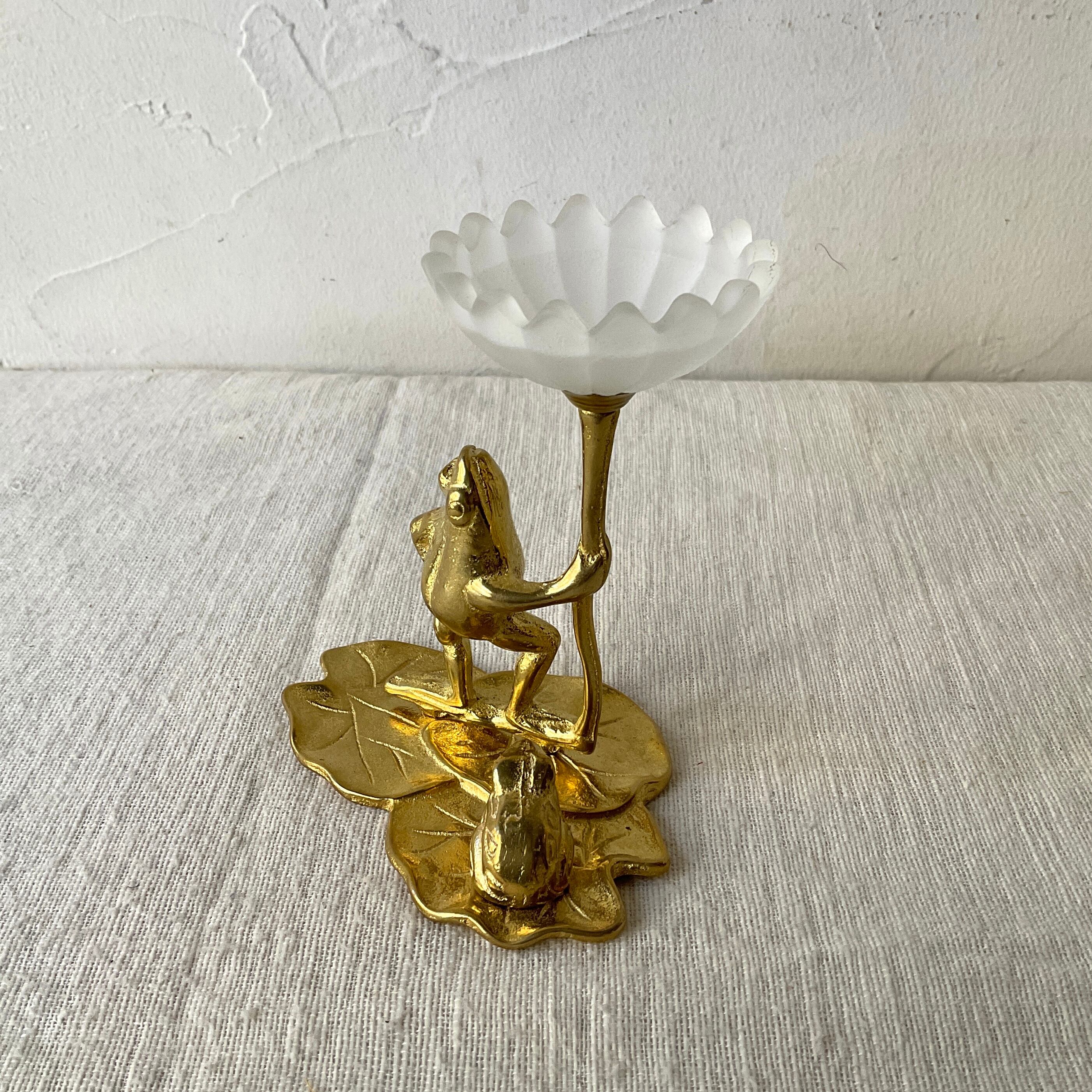 蓮の葉っぱと2匹のカエルがモチーフのキャンドルホルダー。