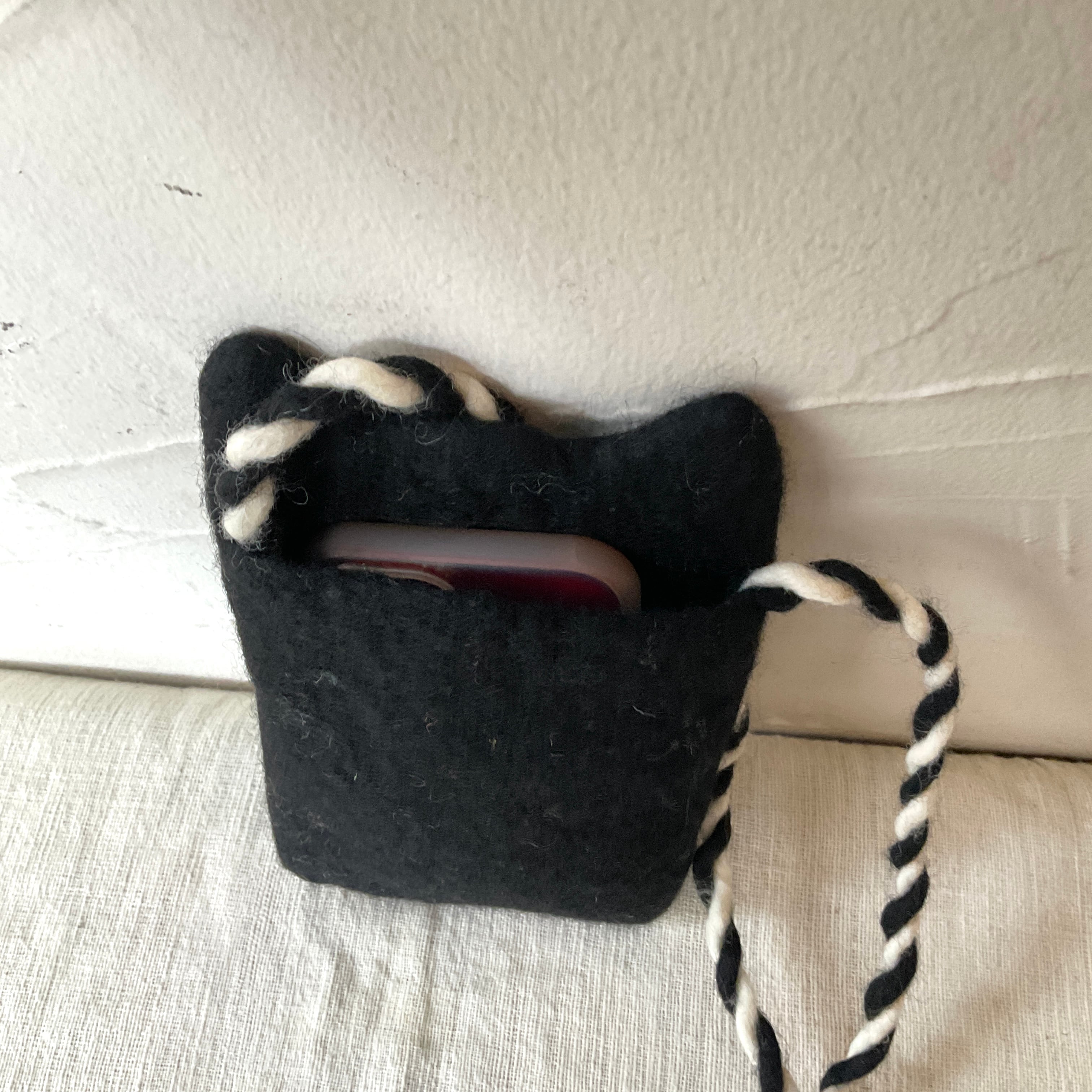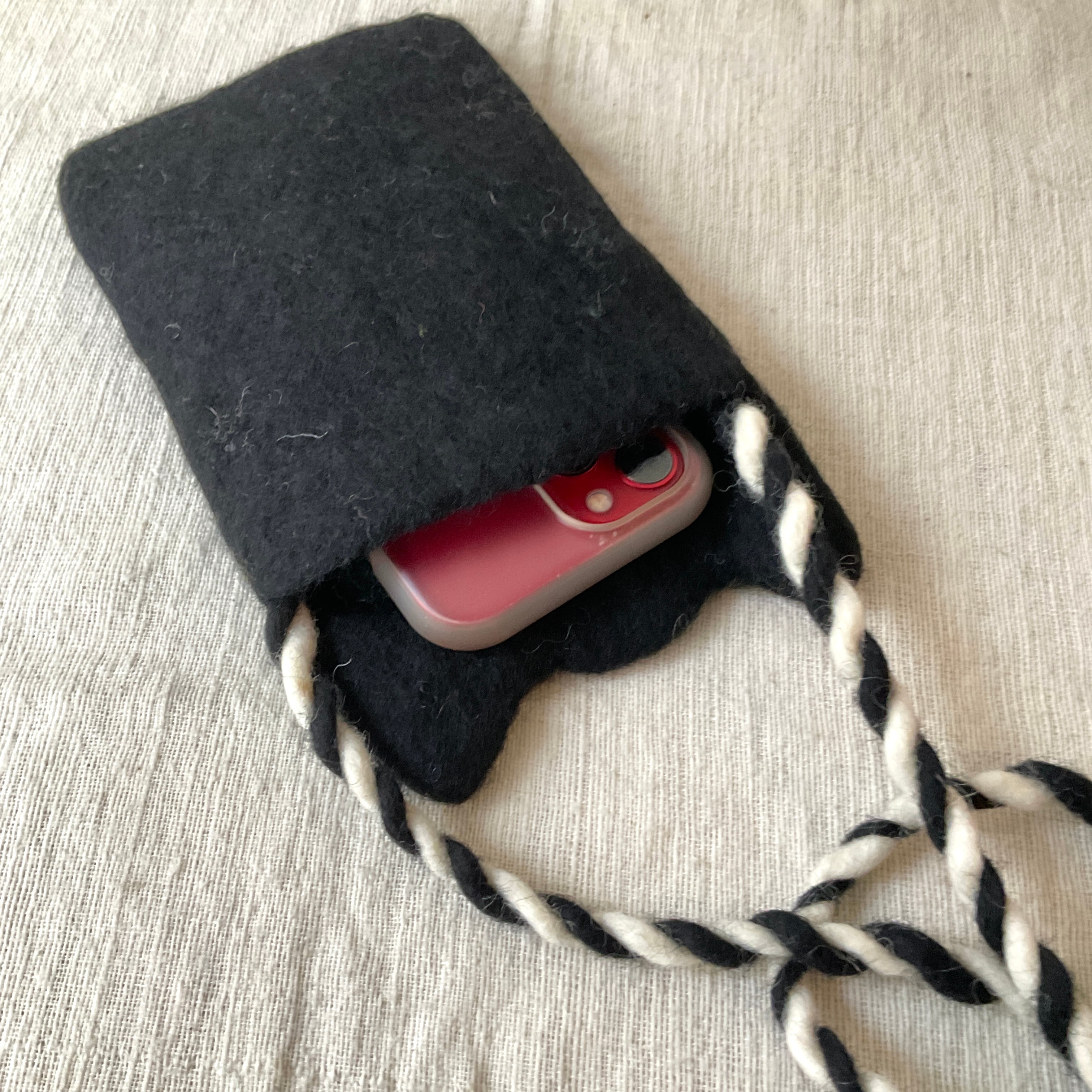 1つ1つ手仕事で作られたフェルト製のスマホポシェット。