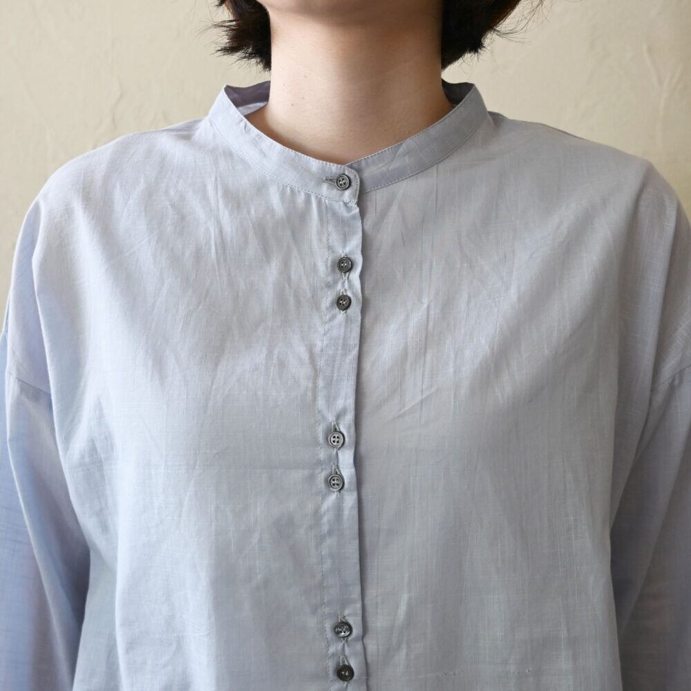 夏を彩るスラブ生地のスタンドカラーシャツ。