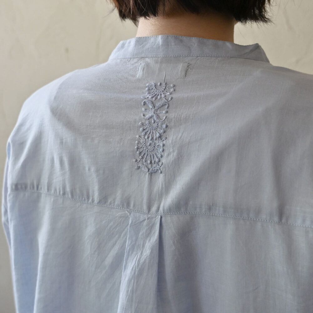 身幅はゆったりとしたシルエットで、暑い季節でもストレスのない着心地。九分袖は冷房対策や日除けにも活躍します。胸元には、シーズンテーマ「Transit」から着想を得た“お花で作ったチケット”をイメージした刺繍をプラスし、さりげない特別感を添えました。