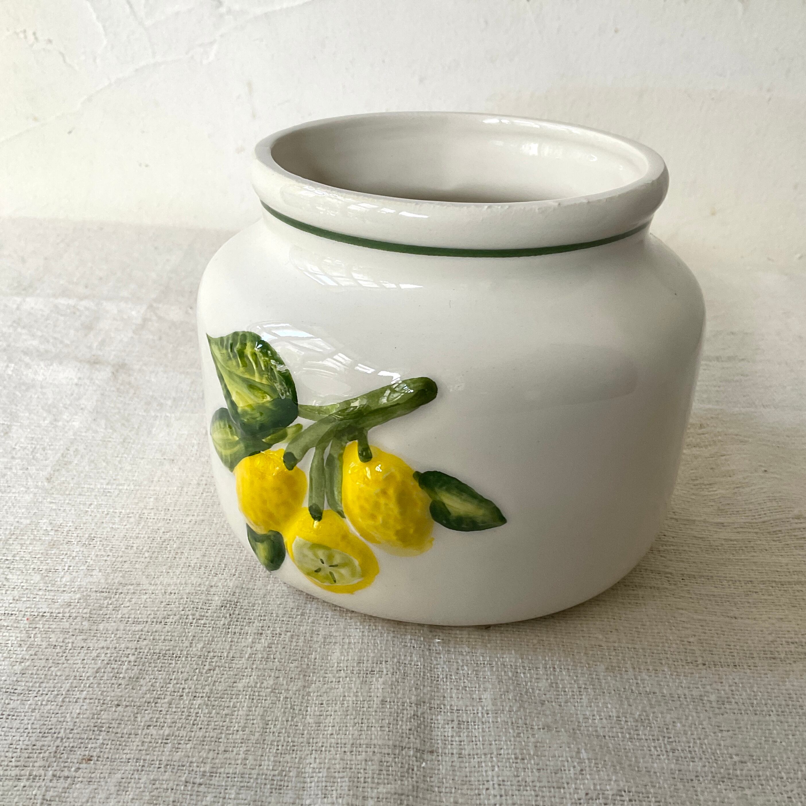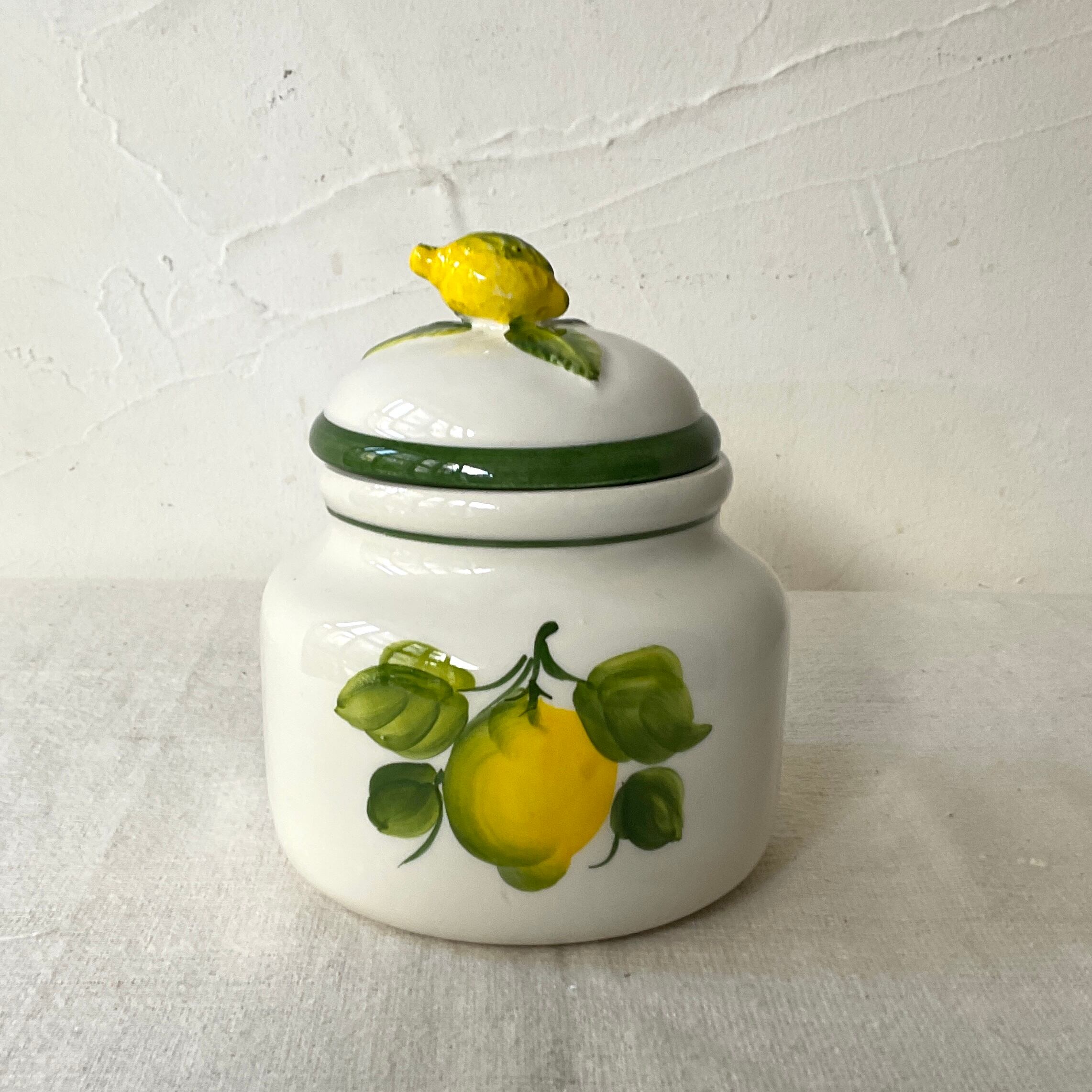 イタリア・バッサーノ産の、レモンがあしらわれたキャニスター。