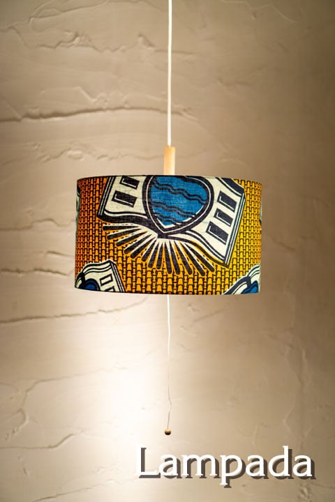西アフリカの生活に欠かせないプリント布『パーニュ』を使った、オリジナル照明シリーズ。