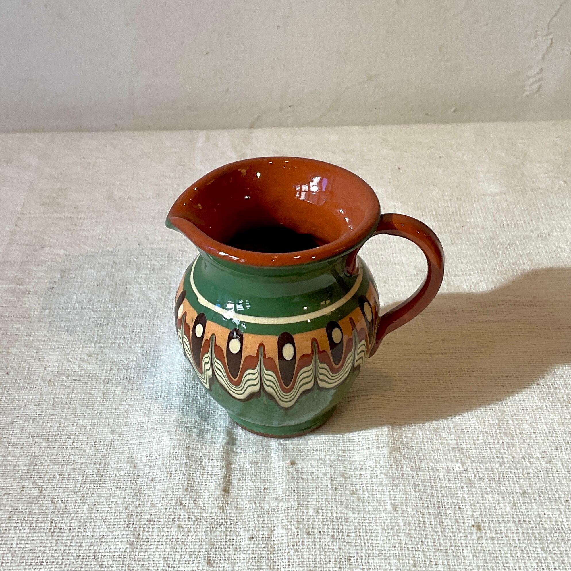 【ブルガリア陶器】トロヤン陶器のミニピッチャー(青・緑・黄)