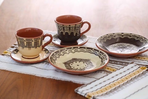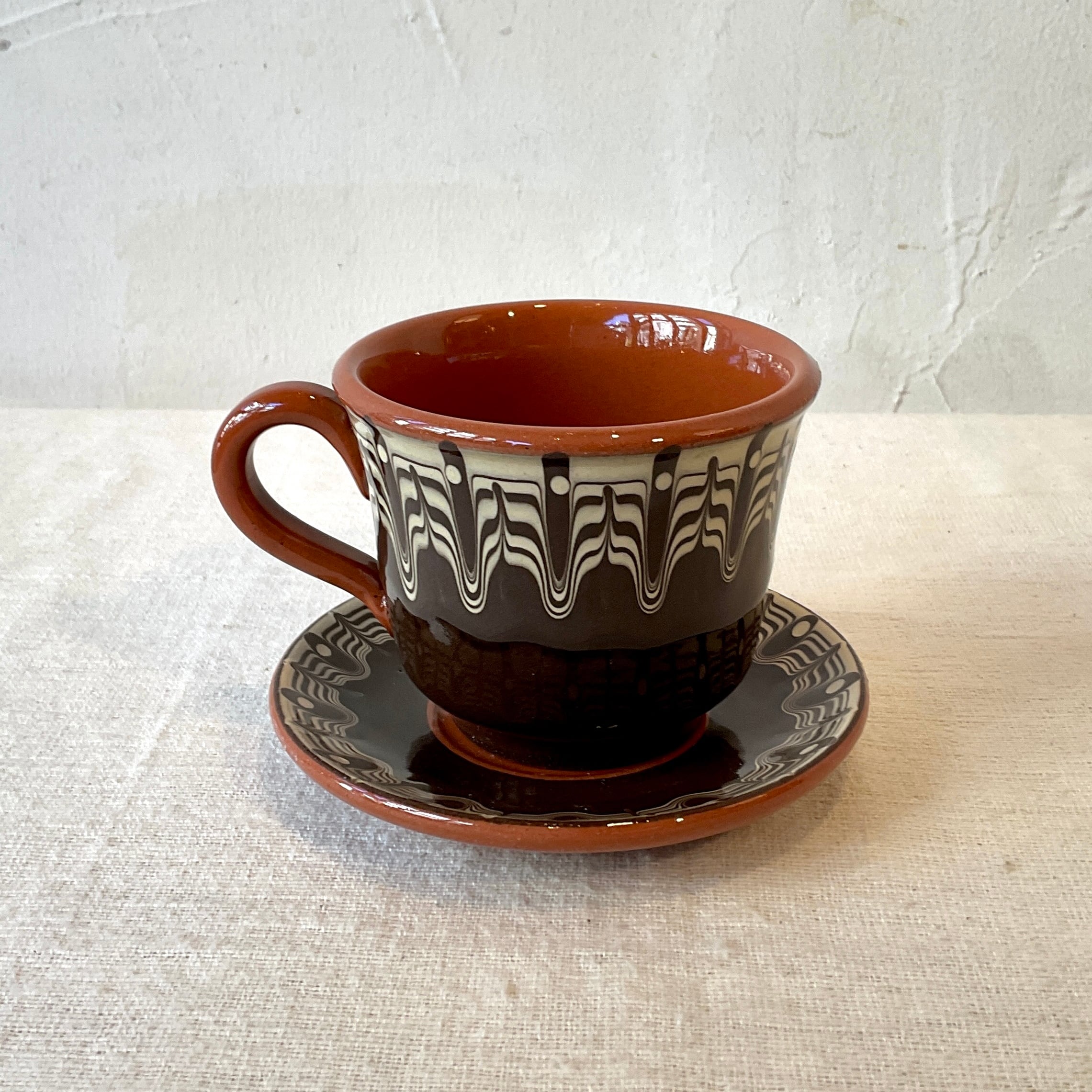 トロヤン柄が引き立つ、温もりのあるフォルムが魅力のカップ&ソーサー。