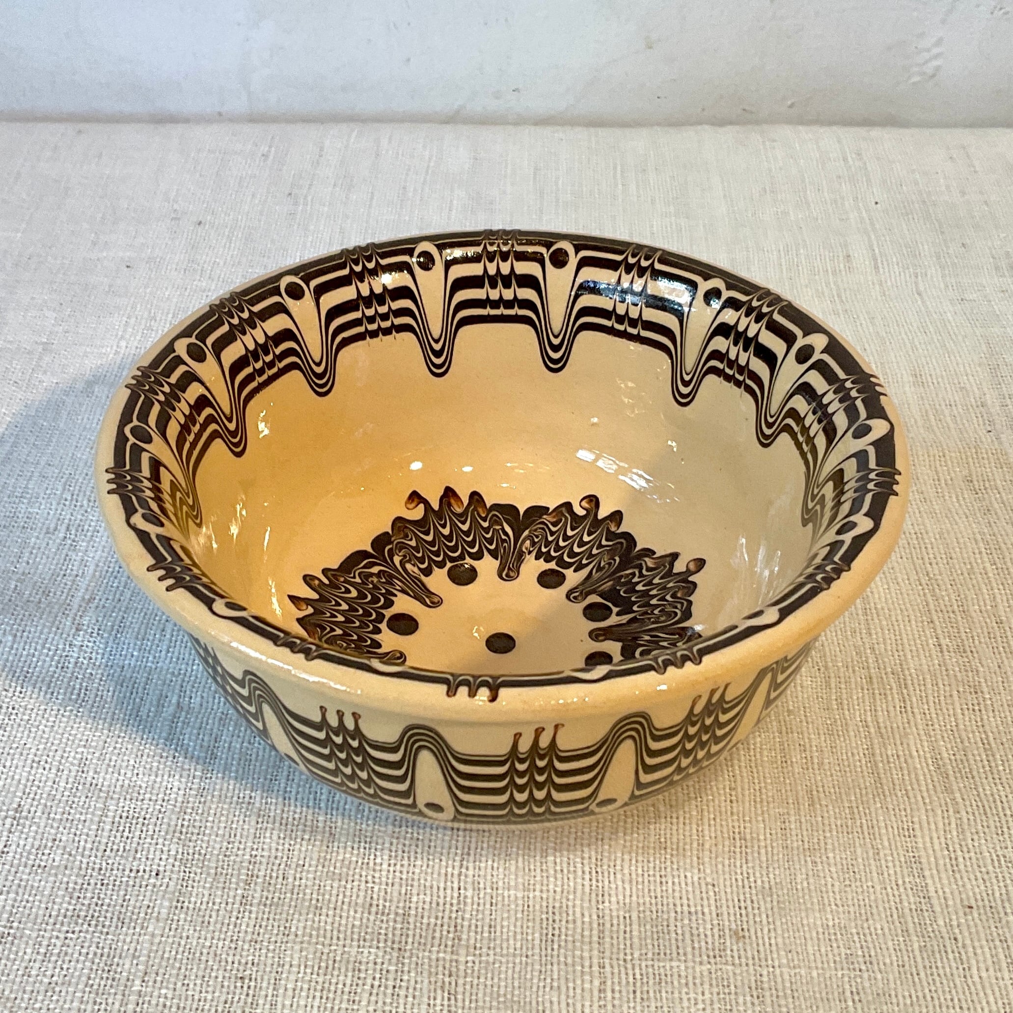 【ブルガリア陶器】トロヤン陶器のボウル中(白・黒)