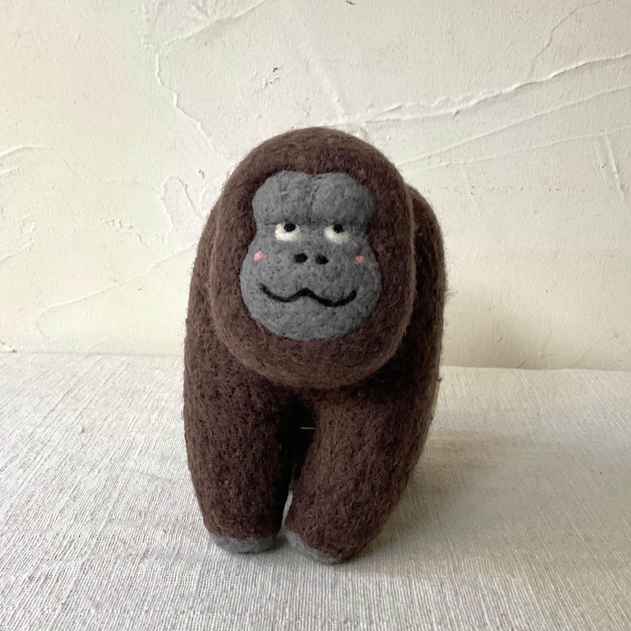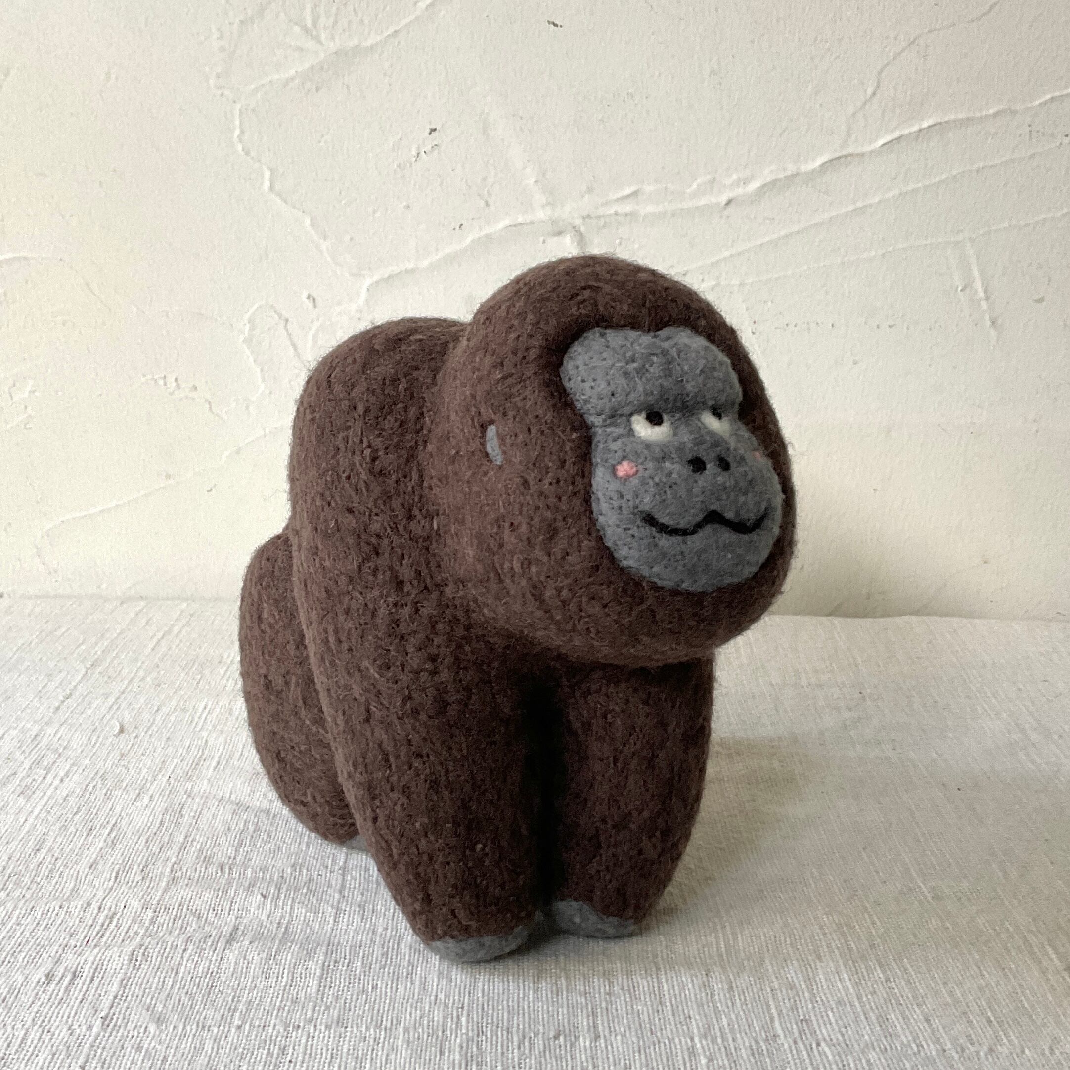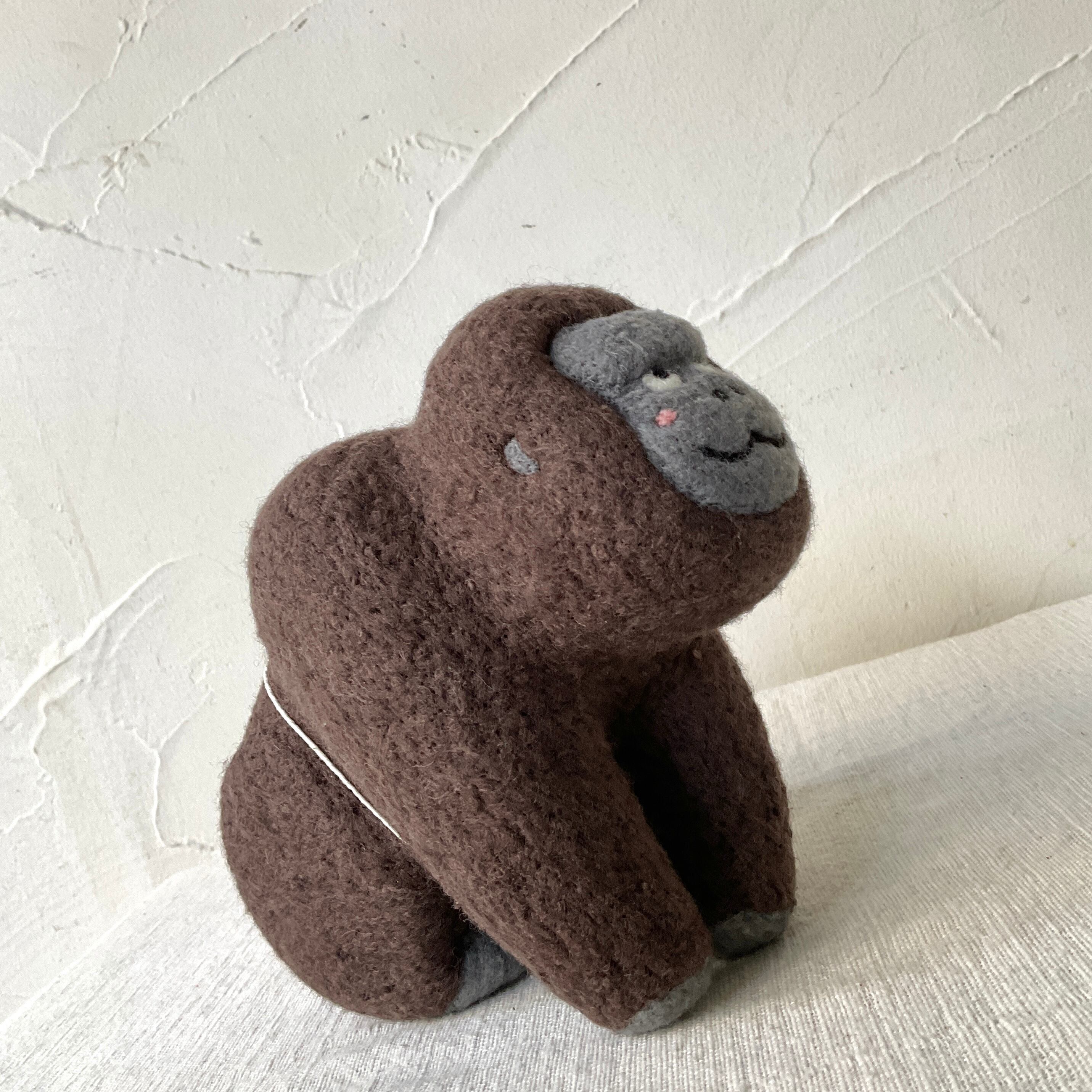 羊毛フェルト製のゴリラのぬいぐるみ。