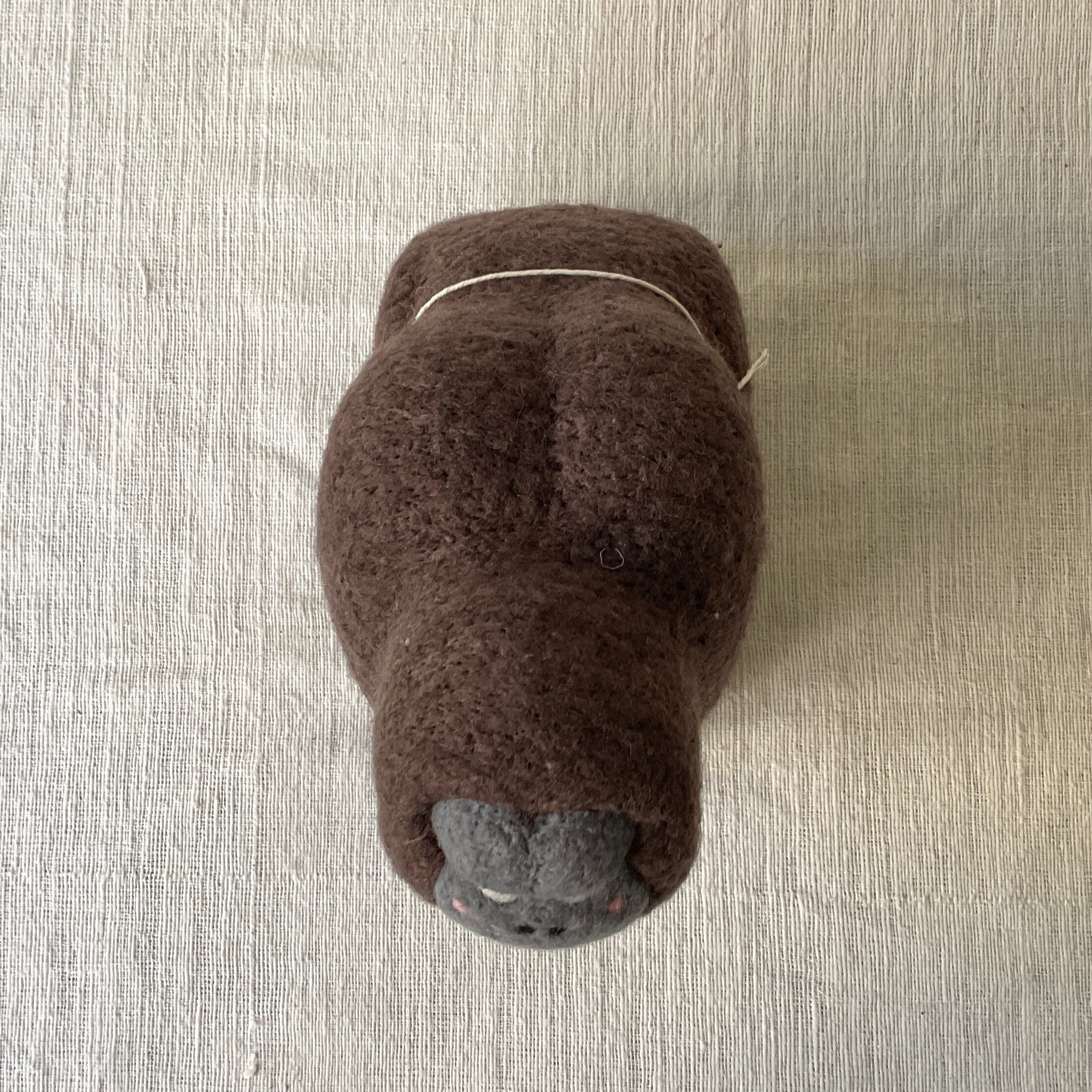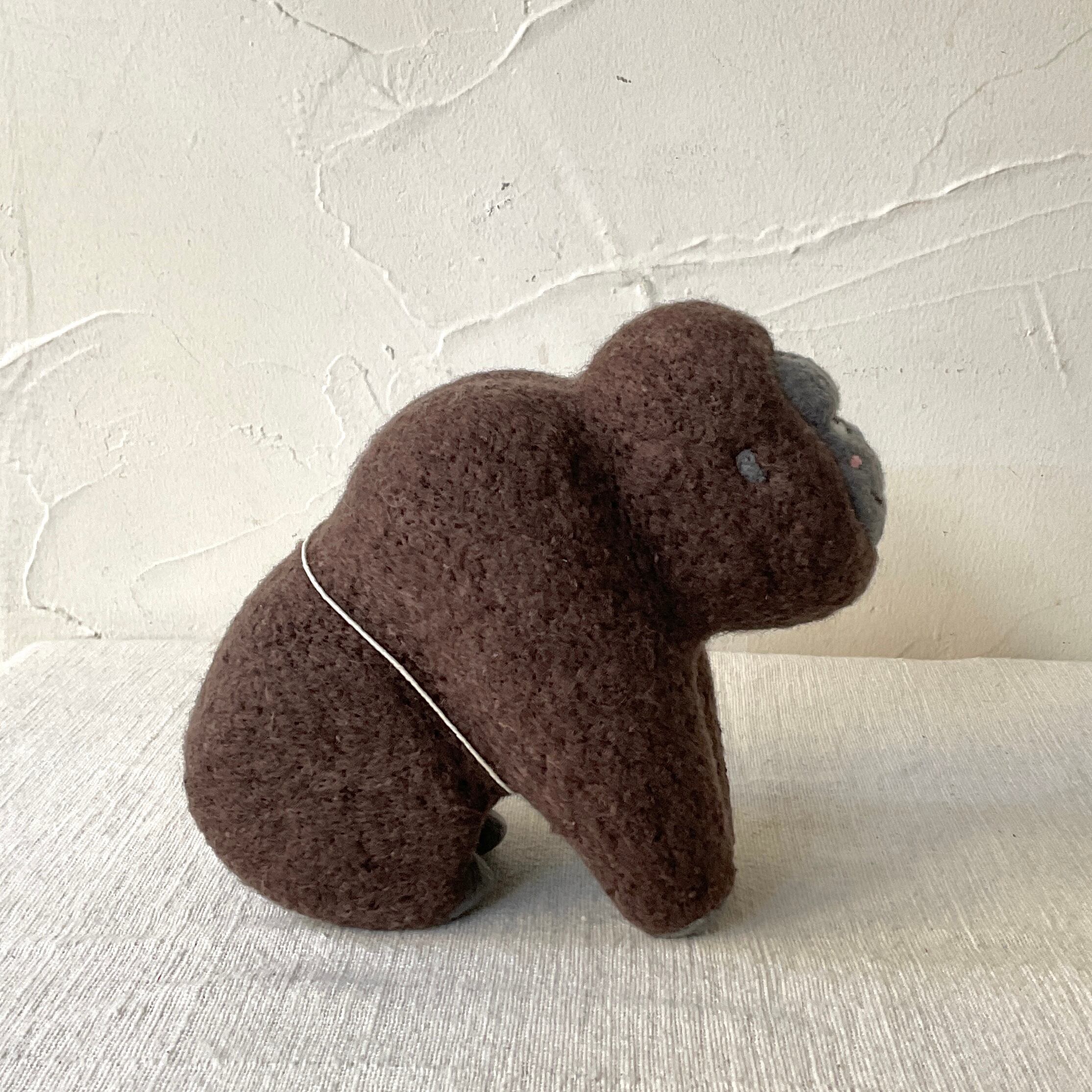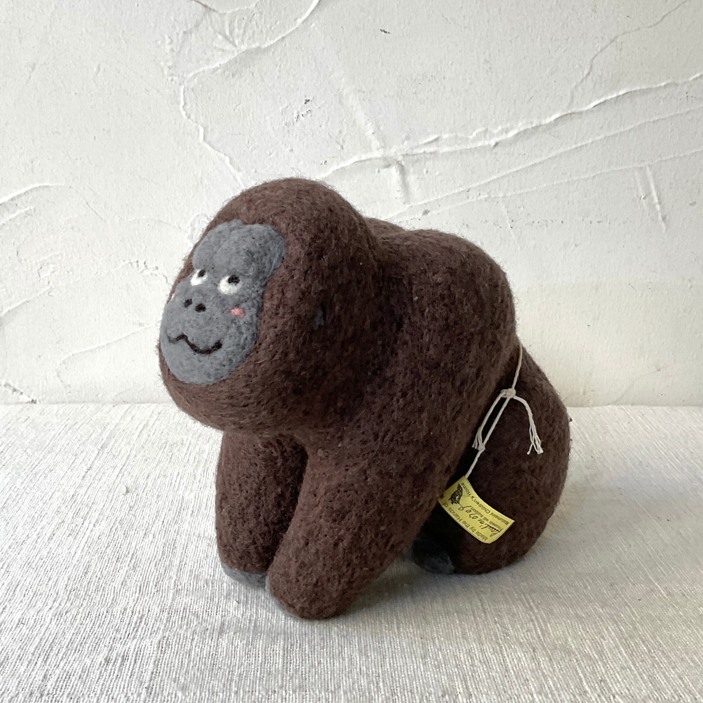 羊毛フェルト製のゴリラのぬいぐるみ。