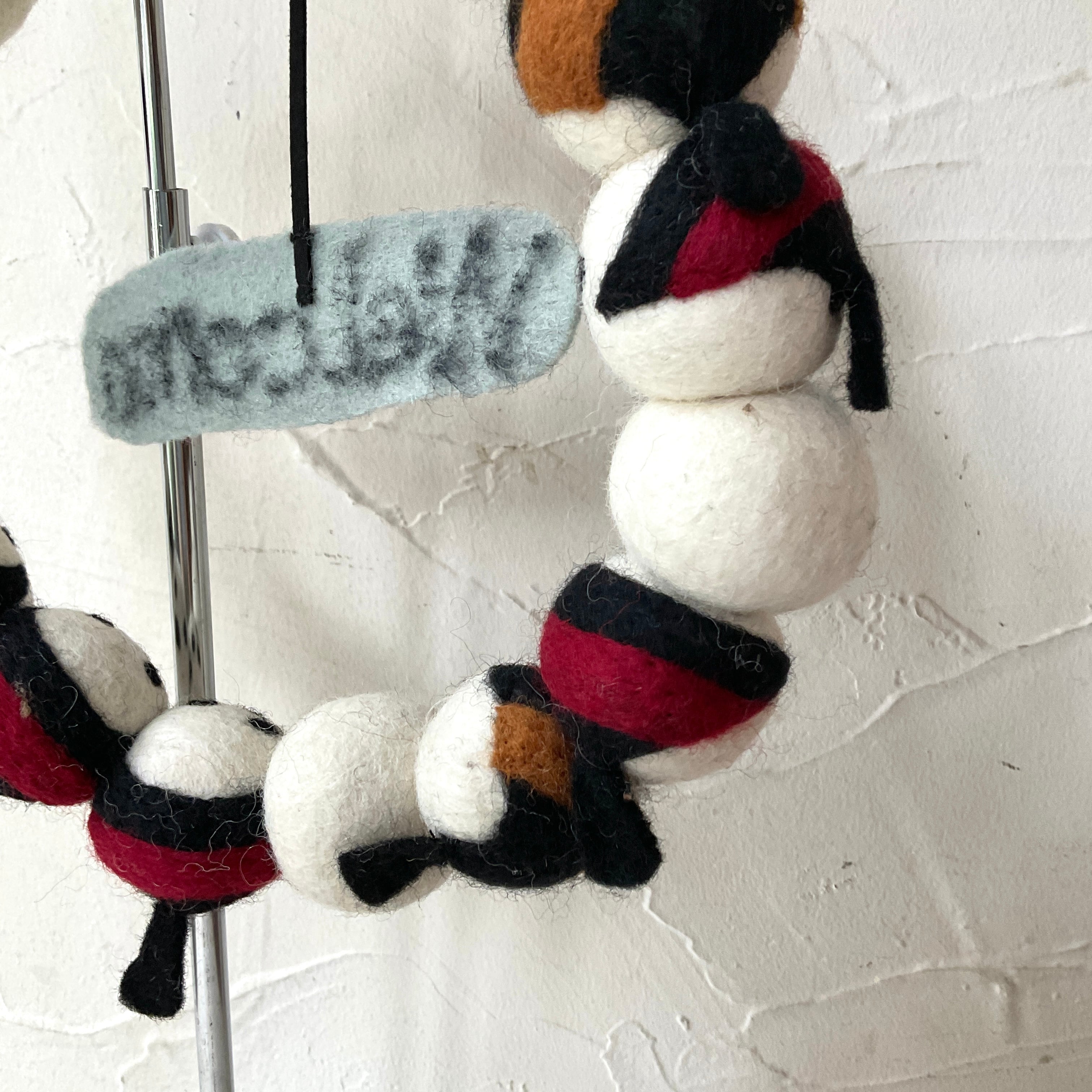 1つ1つ手作業で作られたフェルトのリース。