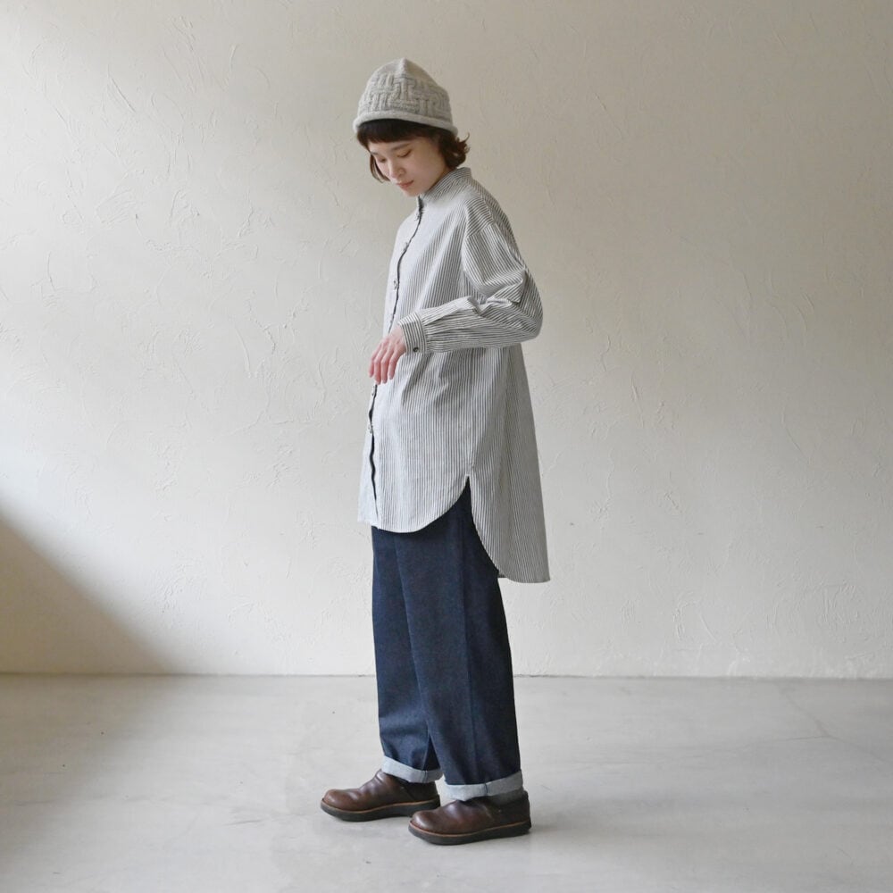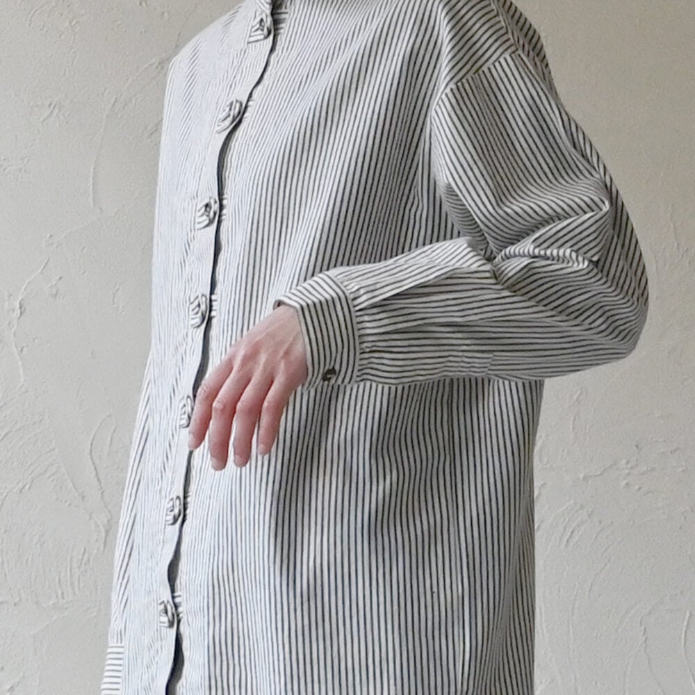 【シサム工房】タテシマチャイナロングシャツ(ホワイトグレイ)